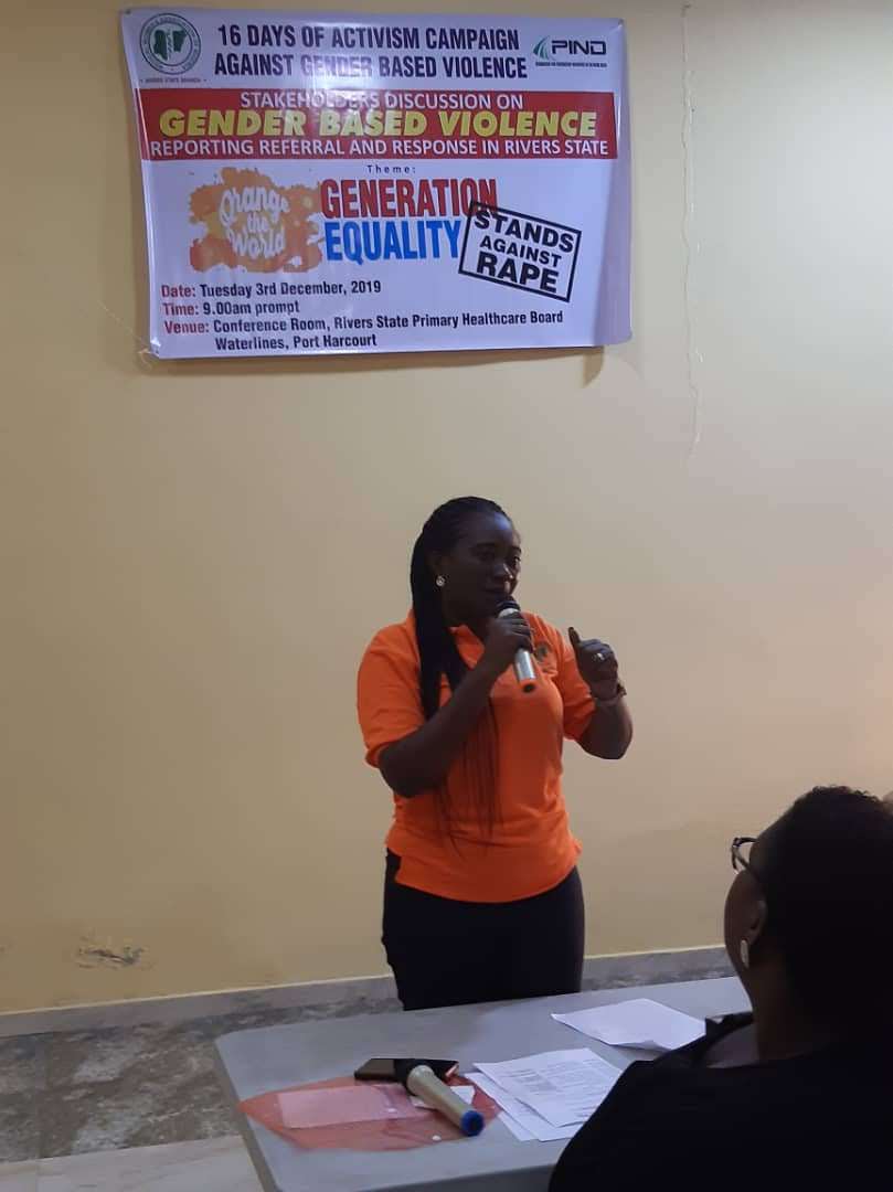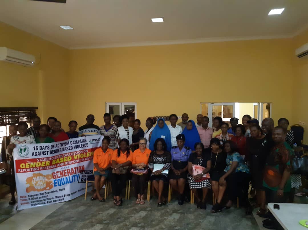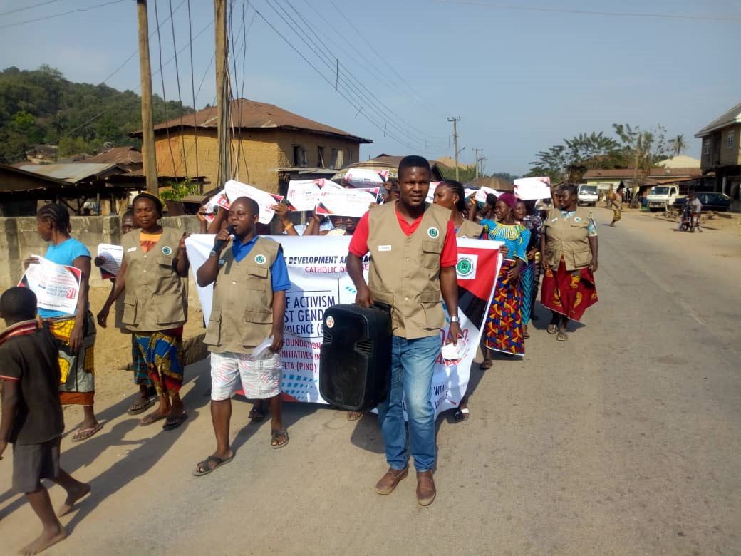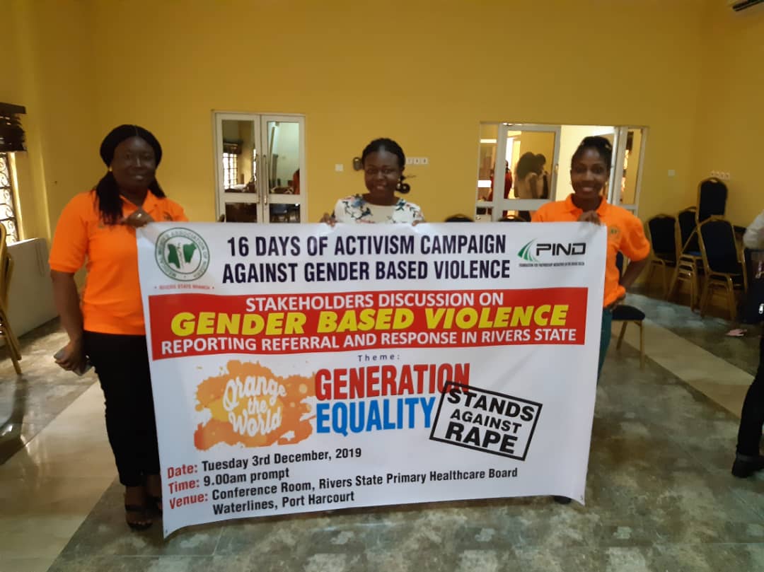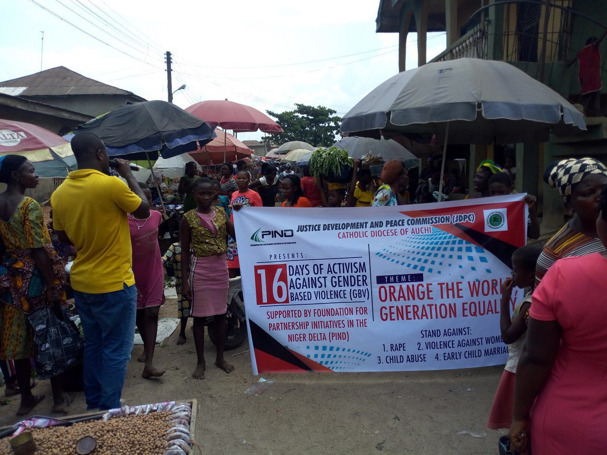 The Foundation for Partnership Initiatives in the Niger Delta (PIND) in November 2019 joined the International Community on a 16-day campaign against Gender-Based Violence (GBV). Leveraging actions as it relates to the year’s theme: “Orange the World: Generation Equality Stands Against Rape!”, PIND, through a competitive process, awarded small grants to four Niger Delta organizations in Akwa-Ibom, Delta, Edo and Rivers States to implement activities in commemoration of the global event; selected grantees were Dynamic Youth Development Organization (DYDO), Akwa Ibom; Medical Women’s Association of Nigeria (MWAN), Rivers State; Justice Development and Peace Commission (JDPC) Catholic Diocese of Auchi, Edo State; and Global Women for Quality and Sustainable Development (GWQSD), Delta State.