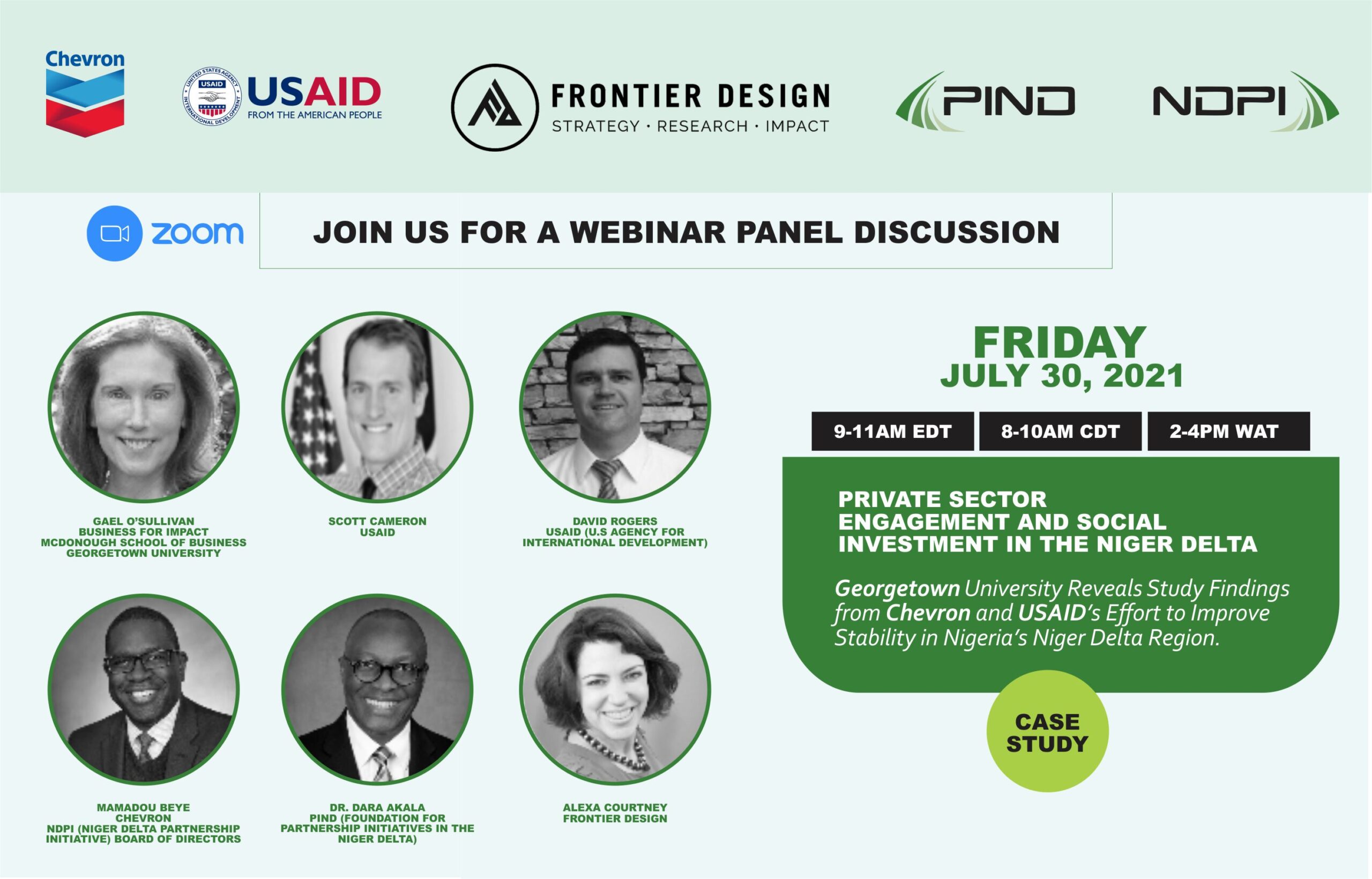 What: Business for Impact at Georgetown University’s McDonough School of Business, together with research partner Frontier Design, announce a new study that analyzes 10 years of partnership-building and investment by Chevron and USAID (U.S. Agency for International Development) through the Foundation for Partnership Initiatives in the Niger Delta (PIND) in Nigeria’s Niger Delta Region. The research focused on a broad suite of projects across different sectors that resulted in increased economic development, job creation, and stability in this region. The case study also provides lessons learned and recommendations for public-private partnerships going forward. The findings will be released at a virtual launch event open to the public on Friday, July 30, 2021. To preview the complete study, please visit Business for Impact.