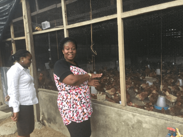 Nancy Iheduru and her staff, Chinyere by their poultry farm