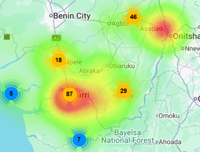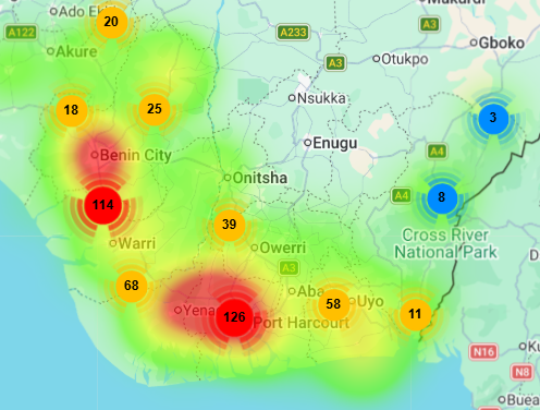 Niger Delta conflict data points for early warning & early response (EWER) recorded on the Peace MapsTownhall Meetings to sensitize on importance of peace during elections.