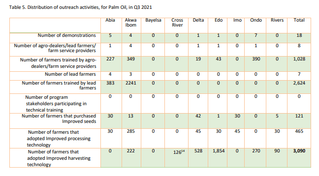 In 2021, PIND plans to further expand its outreach in the Palm Oil sector to 14, 000 farmers, through the network of both the existing service providers whose capacity were built, and new partners. This will deepen access to improved seeds, and adoption of best management practices by farmers, individually or through oil palm business membership organizations for inclusivity. Emphasis will be on stimulating collaboration and coordination amongst different value chain actors in the sector by facilitating linkage activities to expand the field activities of the market actors.