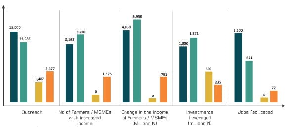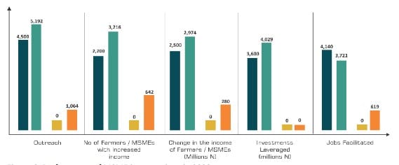 o Farmers/MSMEs with increased Income: The 2022 overall farmers/MSMEs with increased income was estimated to be 1,774 representing 89% performance of the annual target of 2,000 farmers/MSMEs.